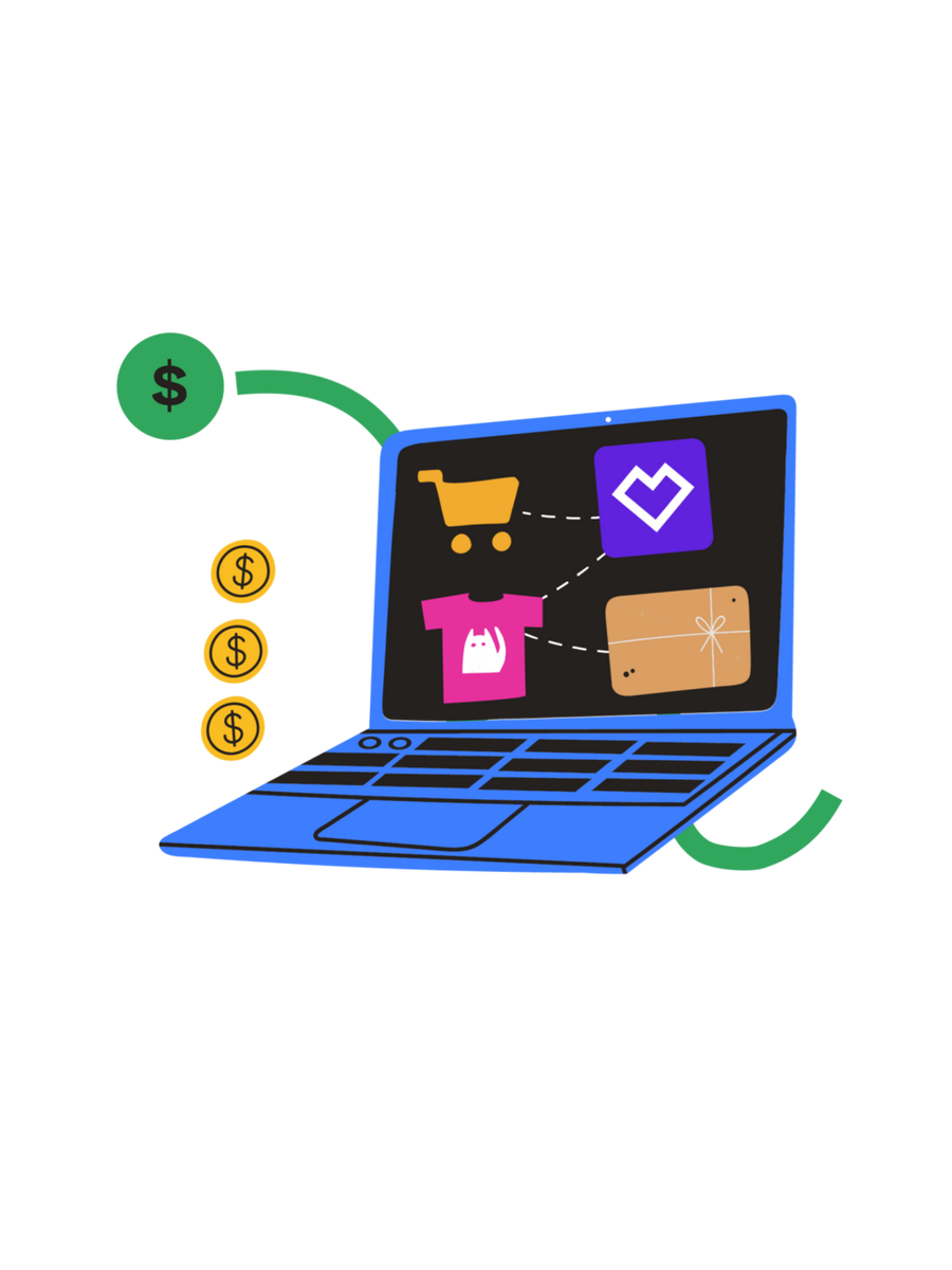 En fonction du prix du produit, qui inclut déjà une zone d'impression, tu décides toi-même combien tu veux gagner par vente. La différence entre le prix payé par ta clientèle et le prix du produit correspond à ta marge.