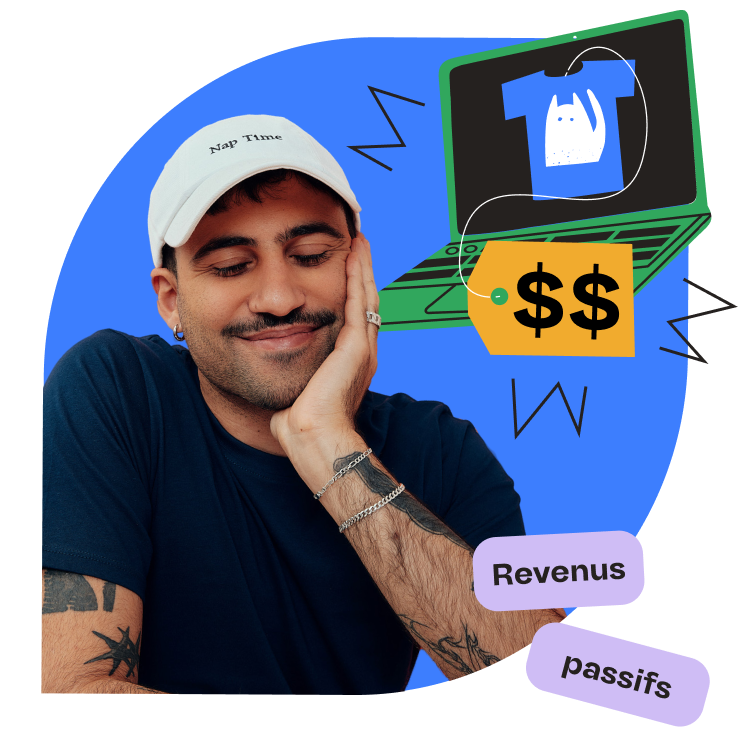 En fonction du prix du produit, qui inclut déjà une zone d'impression, tu décides toi-même combien tu veux gagner par vente. La différence entre le prix payé par ta clientèle et le prix du produit correspond à ta marge.