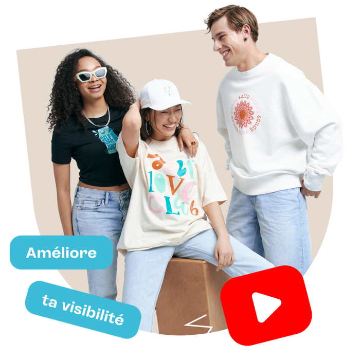 Propulse ta chaîne au niveau supérieur. Propose tes produits personnalisés dans la section YouTube Shopping. Donne ainsi à tes fans la possibilité de soutenir ton travail et de faire évoluer ta marque.
